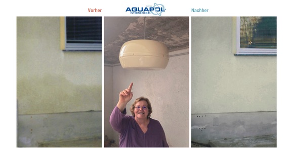 Der kapillare Feuchtespiegel (linkes Bild) verschwand etwa innerhalb 1 Jahres (rechtes Bild) so die zufriedene Kundin in Niederösterreich Quelle: Aquapol Archiv