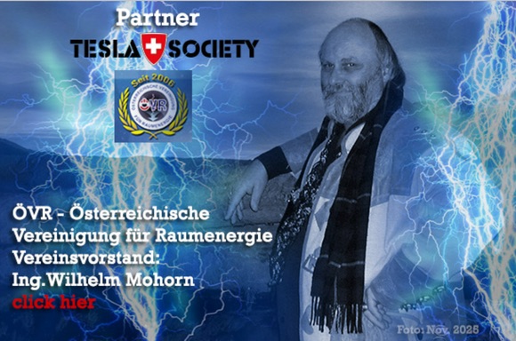 Wir, die «Tesla Society», haben uns entschlossen, neu Willy Mohorn mit seiner «ÖVR» in unsere «Tesla Society» zu integrieren. Mit der «ÖVR» werden in der Zusammenarbeit weitere Synergien erzielt, die revolutionären Ideen von Nikola Tesla der breiten Öffentlichkeit zur Verfügung zu stellen.